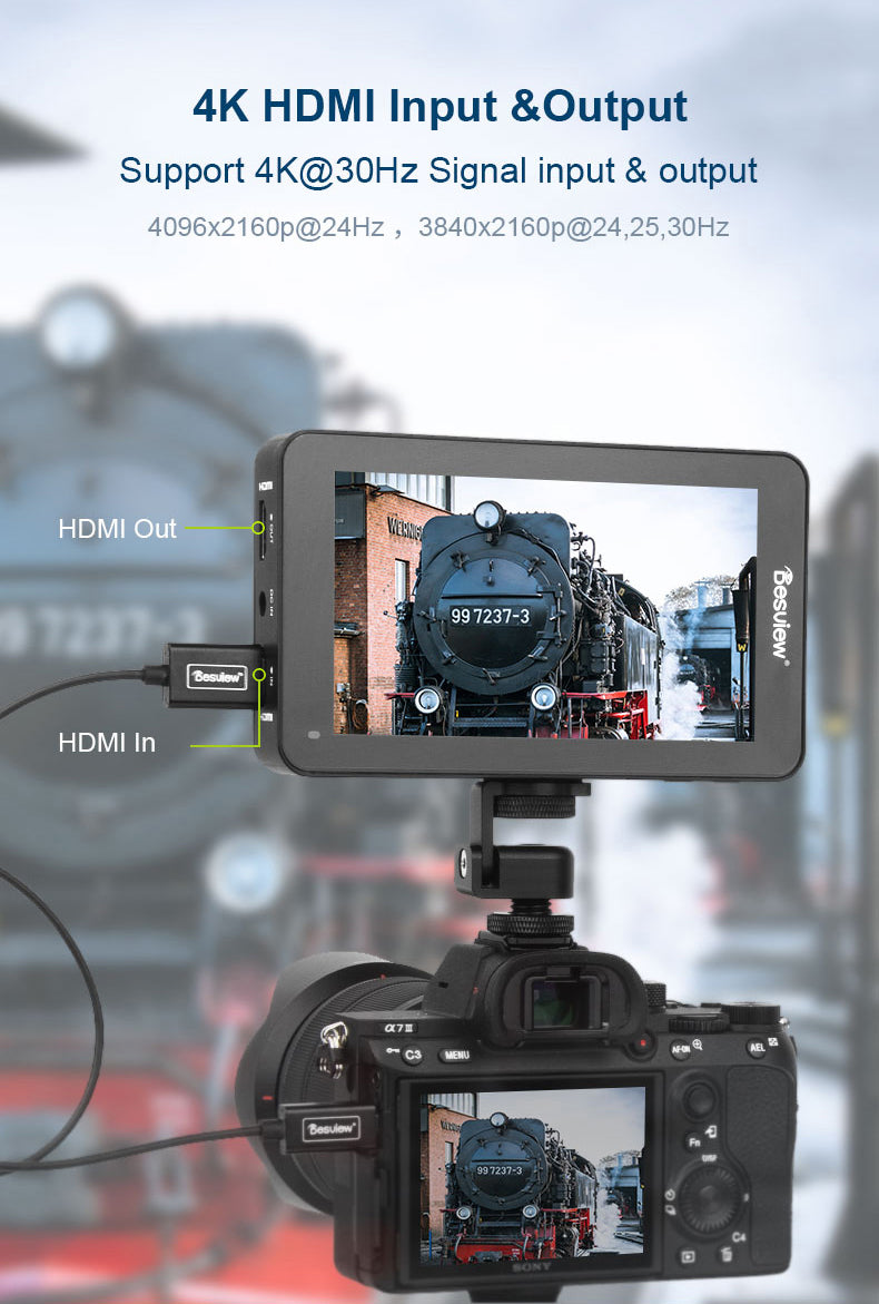 El monitor táctil R6 UHB de 5,5 pulgadas con un brillo ultraalto de 2800 cd/m² es un monitor táctil compacto de 5,5 pulgadas integrado en la cámara, con una carcasa ligera pero resistente fabricada en policarbonato y plástico ABS. Está equipado con una pantalla extraordinariamente brillante con una resolución de 1920 x 1080 píxeles y una relación de contraste de 1000:1, lo que lo hace adecuado para su uso en exteriores sin parasol, y el sensor integrado permite que el monitor ajuste automáticamente el brillo de la pantalla. El monitor es compatible con las resoluciones DCI 4K24 y 4K30 UHD a través de la entrada HDMI; el escalado de señal para la visualización y la salida HDMI pasiva permiten enviar la señal original sin modificar desde la cámara a otros monitores o conectarla a un transmisor inalámbrico para facilitar la transmisión.