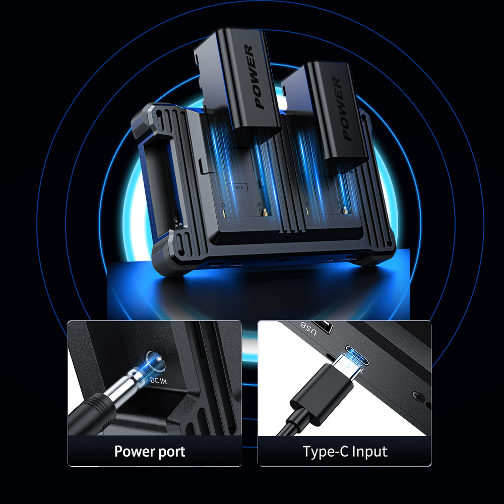 Nueva configuración de dos baterías para el disparo en ráfaga Compatible con dos baterías NP-F970, entrada de CC y alimentación tipo C. Gracias a las diversas opciones de alimentación, se adapta a diferentes situaciones y requisitos de grabación |