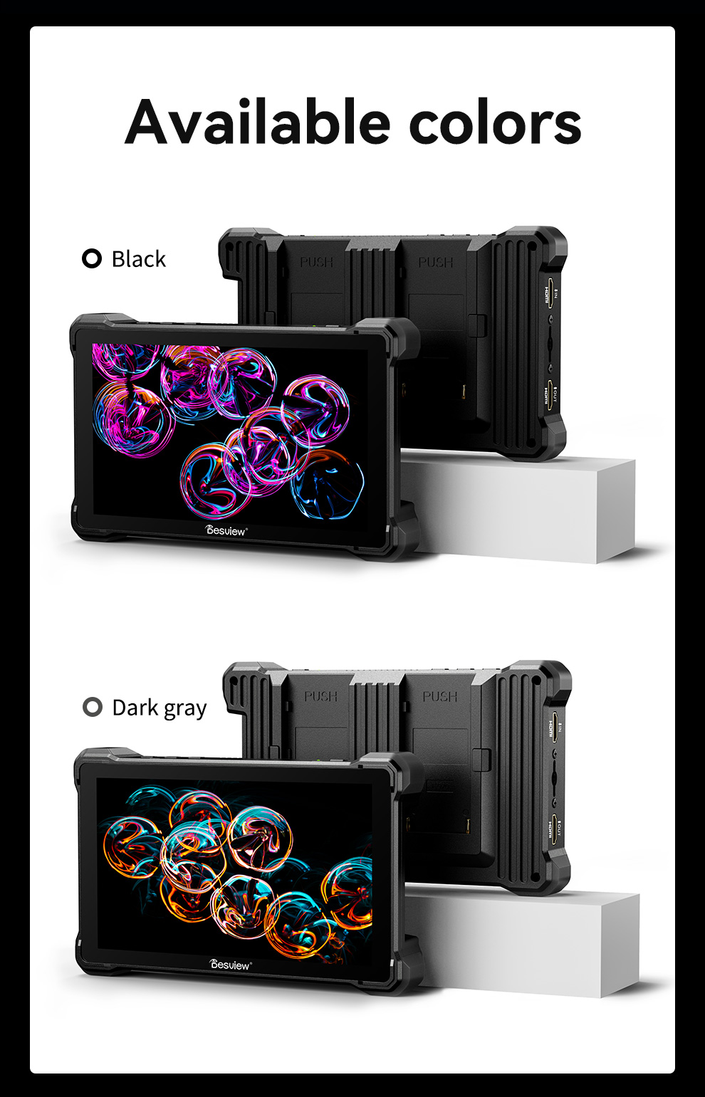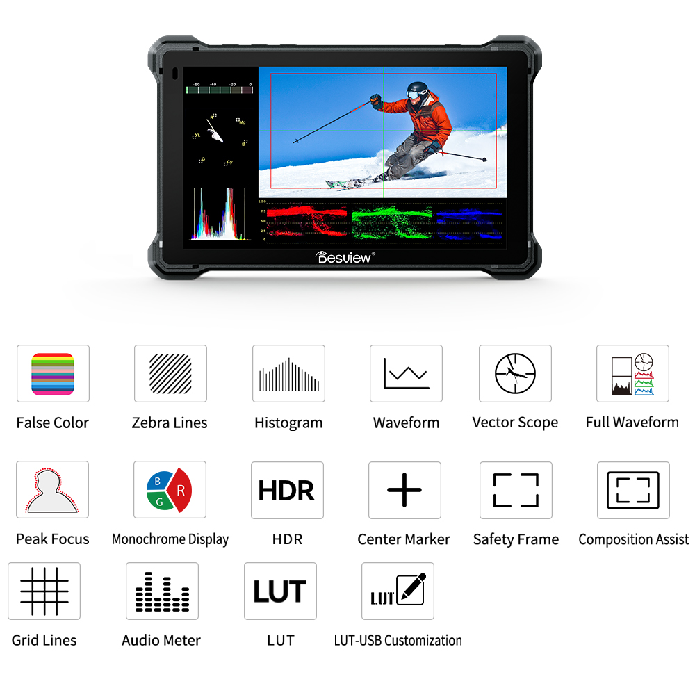 Monitor x 1 Cable A-AHDMI x 1 Cable Micro HDMI x 1 Cable D-Tap x 1 Soporte para monitor x 1 Disco U x 1 Paño para el polvo x 1 Manual de usuario x 1 |