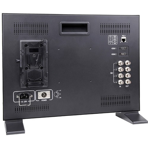 El monitor admite opciones de alimentación flexibles, incluyendo alimentación de red (110-265 V), conector XLR de 4 pines o batería V-mount (se vende por separado), y se suministra con un parasol extraíble, cables HDMI y SDI y un paño de limpieza. Gracias a su diseño ligero y su construcción robusta, es ideal para su uso en estudio, sobre el terreno o en retransmisiones en directo.