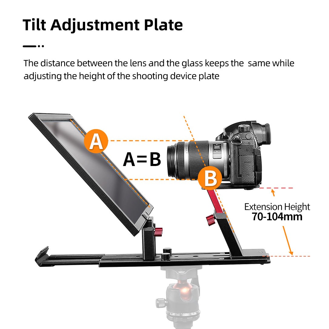 El teleprompter Desview T12S es una solución robusta para retransmisiones, diseñada para creadores de contenido, streamers en directo, docentes y profesionales que necesitan un contacto visual natural y una presentación fluida. El T12S está fabricado en una resistente aleación de aluminio y cuenta con una plataforma elevadora integrada y un diseño inclinable y extensible para adaptarse rápidamente a diferentes configuraciones de grabación. Admite grabaciones tanto horizontales como verticales con smartphones y tabletas de hasta 12,9 pulgadas, lo que lo hace ideal para su uso con cámaras DSLR, cámaras sin espejo, videocámaras y cámaras web.