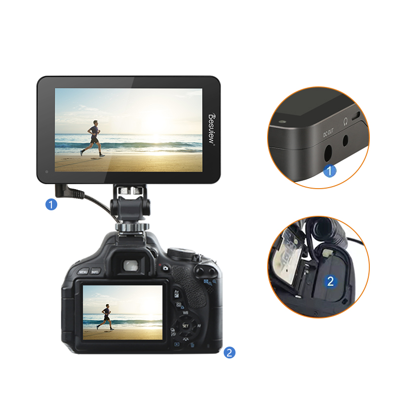 El monitor compacto U6 4K HDMI Camera Control Monitor de 5,5" de Desview ofrece una visualización profesional en una nítida pantalla IPS LCD de 5,5" con una resolución de 1920 x 1080, un brillo de 2800 cd/m², una relación de contraste de 1000:1 y control táctil. El monitor está equipado con entrada y salida HDMI y admite entrada y salida de vídeo con resoluciones de hasta DCI y UHD 4K. También cuenta con un puerto USB tipo C que proporciona una entrada de 5 V para alimentar el monitor y que también se puede utilizar para controlar funciones de la cámara LANC, como la apertura del diafragma y el enfoque. También puede alimentar la cámara u otros accesorios mediante la salida de 8 VCC del conector cilíndrico.