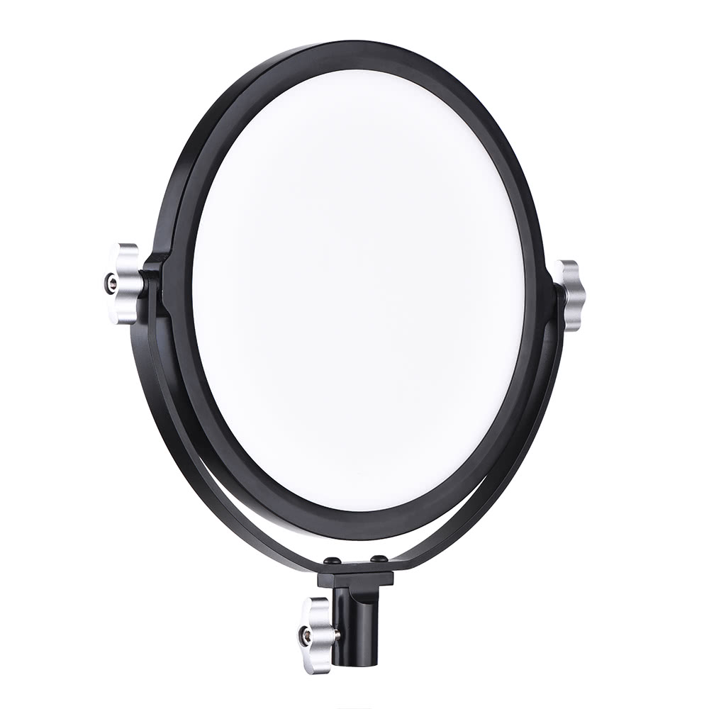 Gracias a su forma única, su CRI de más de 95 y sus opciones de alimentación y control, la luz LED-260S es una herramienta muy útil tanto en el estudio como en exteriores para diversos usos especializados. Tiene una temperatura de color de 5600 K para armonizar con otras luces o con la iluminación ambiental, o para lograr una reproducción fiel de los colores. El brillo es regulable en un rango de 0-100 %, por lo que no es necesario utilizar difusores ni mover la luz para conseguir la iluminación adecuada. El disco de luz en miniatura, con un diámetro de 10,23", tiene un grosor de poco más de 1/2", y como sus LED apenas se calientan al tacto, la luz se puede colocar en lugares donde las fuentes de luz tradicionales no llegan. La carcasa de la luz de vídeo está fabricada en aluminio aeronáutico de alta calidad, muy resistente al desgaste y con una larga vida útil. Se suministra con un adaptador de corriente de 100-240 V CA, preparado para su uso en todo el mundo, pero también puede funcionar con baterías opcionales de 7,2 V tipo NP-F si no se dispone de alimentación de red. Dado que en los lados izquierdo y derecho de la luz de vídeo hay montado un bastidor de soporte de aleación de aluminio, se pueden ajustar cómodamente diferentes ángulos de iluminación. La placa difusora de alta calidad del panel LED consigue suavizar notablemente la luz.