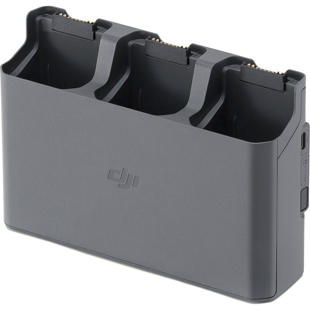 La estación de carga DJI Air 3 Battery Charging Hub es una solución compacta y eficaz diseñada para cargar de forma secuencial hasta tres baterías de vuelo inteligentes DJI Air 3, al tiempo que sirve como fuente de alimentación para accesorios como el mando a distancia o un smartphone.