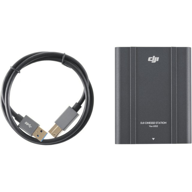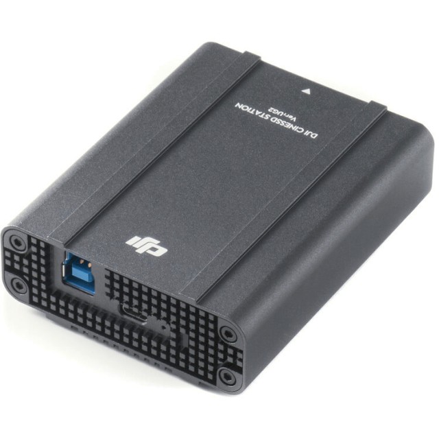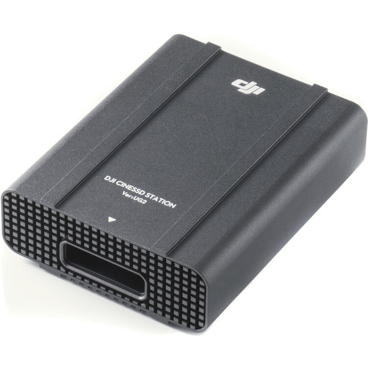 La estación DJI Inspire 2 CINESSD (UG2) ofrece una conexión USB 3.0 rápida y cómoda para transferir archivos de vídeo de gran tamaño desde las unidades CINESSD directamente a tu ordenador, y es compatible con unidades de varias capacidades para garantizar flujos de trabajo profesionales eficientes.