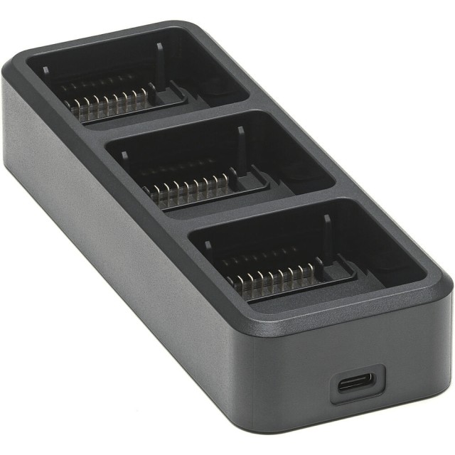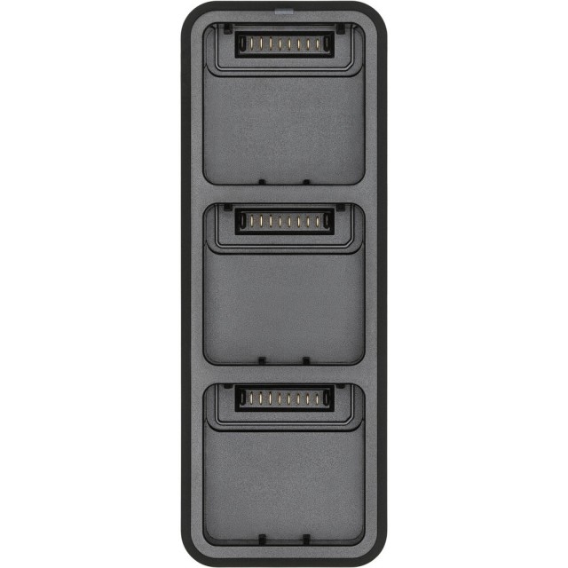 La estación de carga DJI Mavic 3 Battery Charging Hub carga de forma eficaz hasta tres baterías de vuelo inteligentes del Mavic 3 de forma consecutiva. Cuando se utiliza con el cargador Mavic 3 de 65 W recomendado, detecta el nivel de carga de la batería para maximizar la eficiencia de la carga y garantizar que siempre estés listo para volar.
