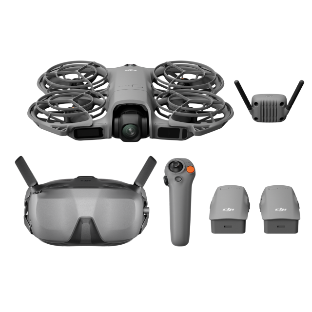 El DJI Neo 2 es el dron más compacto de DJI, equipado con detección de obstáculos en todas las direcciones y funciones como el control por gestos, SelfieShot y ActiveTrack, que permiten formas más creativas de volar. El kit incluye el dron, el RC Motion 3, las gafas N3, tres baterías de vuelo inteligentes, un concentrador de carga bidireccional, un transceptor digital, protectores de hélices y otros accesorios.