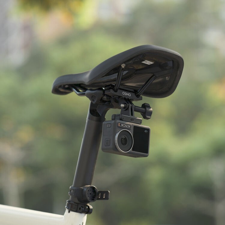 Captura imágenes dinámicas durante el recorrido con el soporte DJI Osmo Action Bike Seat Rail Mount, diseñado para fijar de forma segura tu cámara Osmo Action a la parte inferior del sillín de la bicicleta.