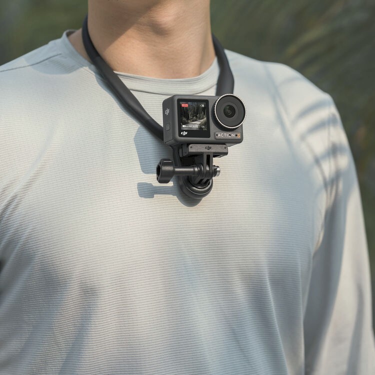 Captura impresionantes imágenes en primera persona sin necesidad de usar las manos gracias al soporte de cuello Osmo Action, diseñado para ofrecer comodidad, flexibilidad y una sujeción segura a las cámaras de la serie Osmo Action.