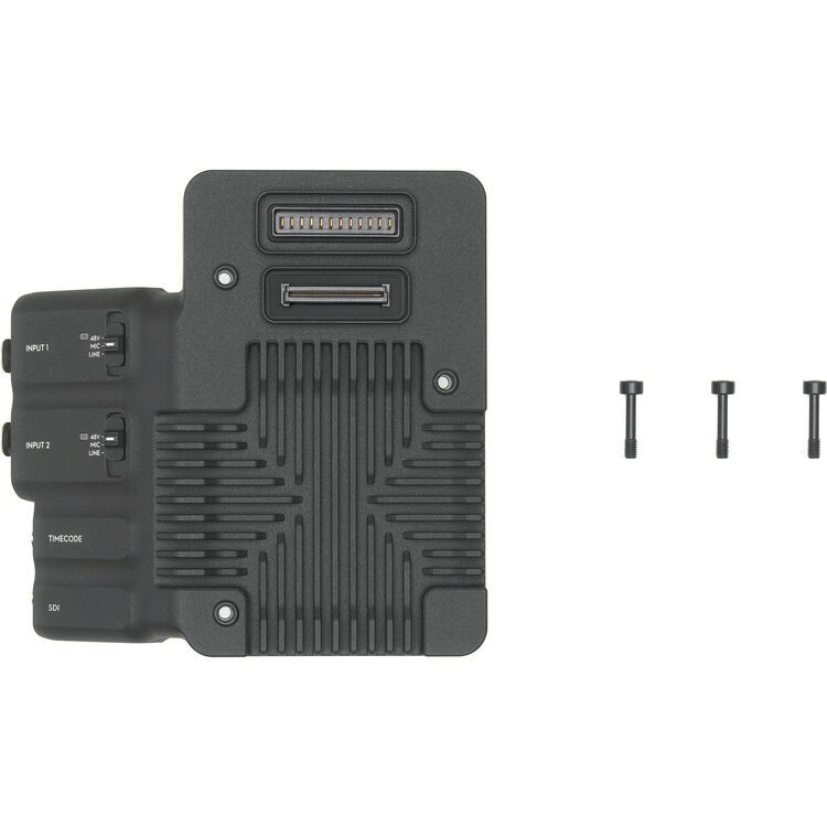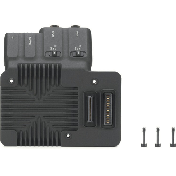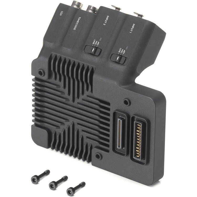 La placa de expansión DJI Ronin 4D añade a tu cámara Ronin 4D una salida SDI de 6K u 8K, código de tiempo y entradas de audio XLR, lo que permite una conexión de audio y vídeo profesional con compatibilidad con alimentación fantasma.