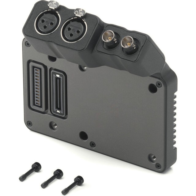 La placa de expansión DJI Ronin 4D es un accesorio profesional diseñado para ampliar las opciones de conexión de tu cámara Ronin 4D 6K u 8K. Esta placa se fija de forma segura a la parte trasera de la cámara mediante tres tornillos de montaje y un conector patentado, y ofrece opciones universales de entrada y salida para configuraciones cinematográficas avanzadas. Incluye una salida BNC SDI para señales de vídeo limpias, un puerto BNC para compartir código de tiempo con dispositivos compatibles, como transmisores de vídeo, y dos entradas de audio XLR de 3 pines. Cada entrada XLR está equipada con conmutadores para conectar micrófonos, señales de nivel de línea y alimentación fantasma de +48 V para equipos de audio profesionales. Esta placa de expansión garantiza una integración eficaz de los flujos de trabajo de audio y vídeo, y permite a los cineastas mantener una alta calidad de transmisión de la señal en el plató.