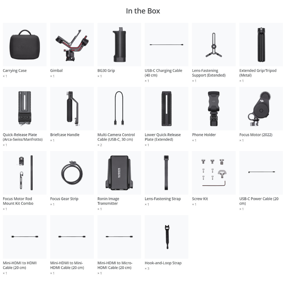 El paquete DJI RS 3 Pro Combo incluye una serie de accesorios que te ayudarán a sacar el máximo partido al gimbal. Entre ellos se encuentran un motor de enfoque, una rueda de enfoque y varios cables de control para garantizar la compatibilidad con una amplia gama de cámaras. El combo también incluye un soporte para teléfono y un minitrípode para una mayor versatilidad. Gracias a su amplia gama de accesorios, el DJI RS 3 Pro Combo representa una solución completa para cineastas profesionales.
