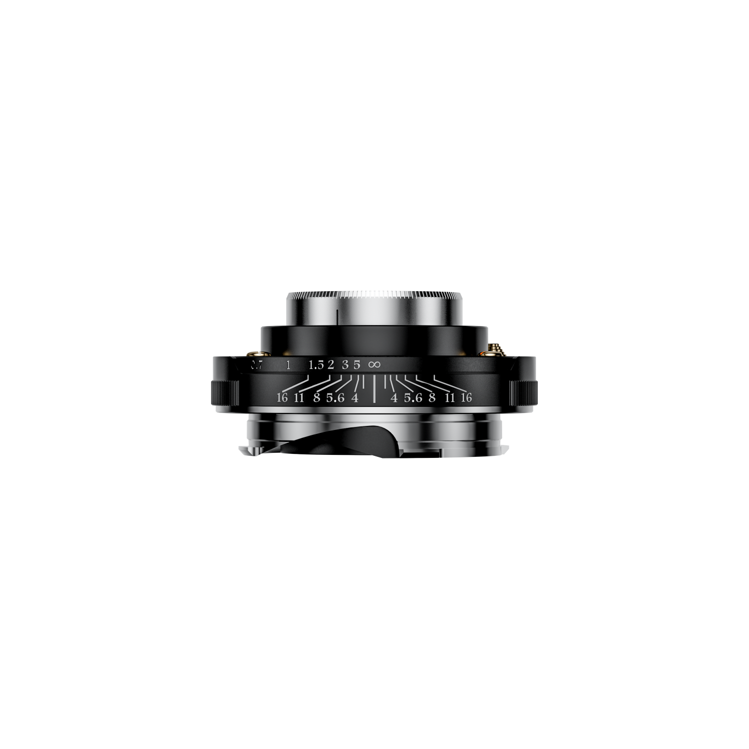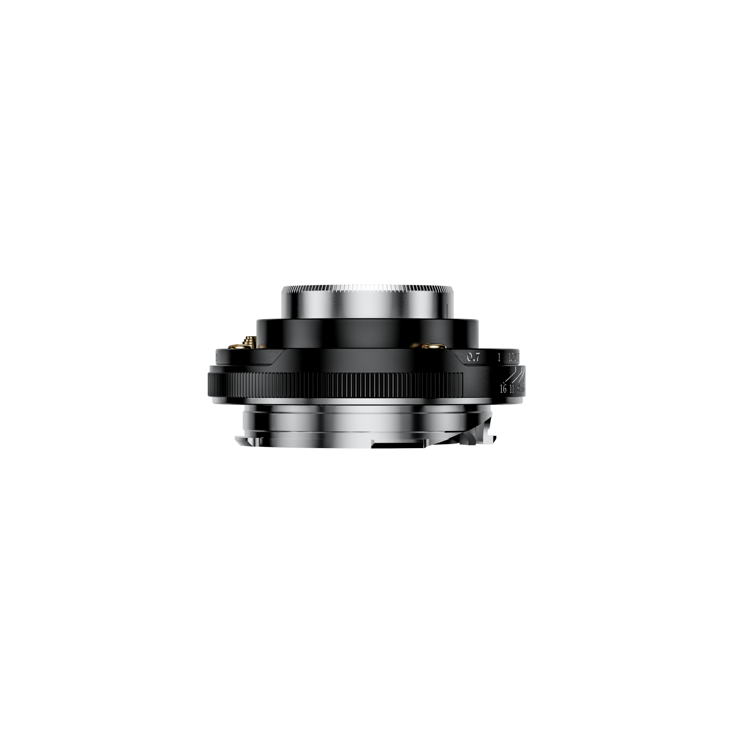 Su construcción de latón garantiza resistencia y un tacto atemporal, mientras que su perfil delgado de 19,5 mm y su diseño ligero, con un peso de 137 g, lo convierten en el objetivo ideal para llevarlo a diario y para la fotografía callejera espontánea. El objetivo, con su elegante acabado negro semibrillante, complementa las cámaras de estilo vintage con su estética sobria y discreta.