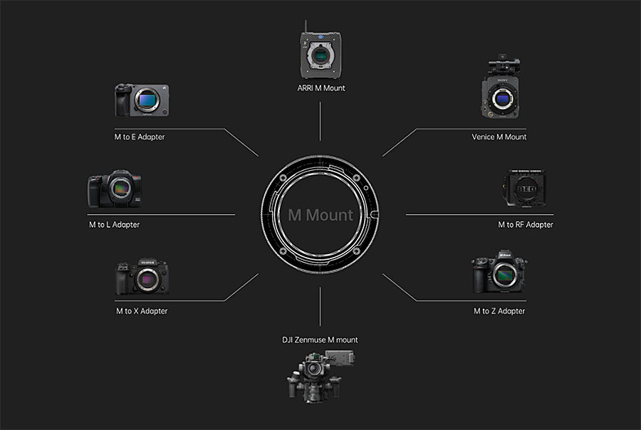 Con los adaptadores estándar de montura M, los objetivos Simera-C se pueden adaptar a diversas cámaras sin espejo (con monturas E, RF, Z, L, X) y utilizarse en distintos sistemas. Con el adaptador bloqueable M-ARRI, también son compatibles con los sistemas ARRI ALEXA Mini LF, ALEXA Mini, AMIRA y otros sistemas ARRI. Esta excepcional compatibilidad facilita el trabajo con todas las cámaras, desde las cámaras sin espejo básicas hasta las plataformas cinematográficas de gama alta, como DJI Ronin 4D, Sony Venice, ARRI y otras.