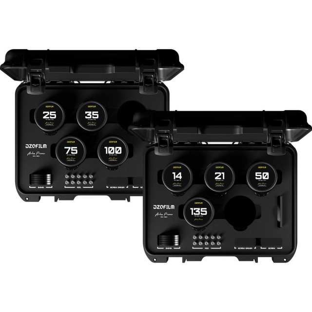 ¡Prepárate para llevar tu creatividad a un nuevo nivel con DZOFilm Arles, una gama de objetivos cinematográficos profesionales de distancia focal fija, con una gran apertura de hasta T/1,4 y una calidad de imagen excepcional! Juego de ocho objetivos de la serie DZOFilm Arles con distancias focales de 14, 21, 25, 35, 50, 75, 100 y 135 mm.