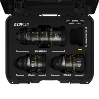 El kit de tres objetivos DZOFilm Catta FF 18-35/35-80/70-135 mm T2.9 Cine (Sony E, negro) es un conjunto completo de objetivos zoom cinematográficos para grabar en formato completo. Este set, diseñado para la producción de vídeo profesional, documentales y emisiones de televisión, incluye tres objetivos de alto rendimiento con respiración mínima, transiciones de enfoque fluidas y un control preciso, que se guardan en un maletín rígido con relleno de espuma a medida para un transporte seguro.
