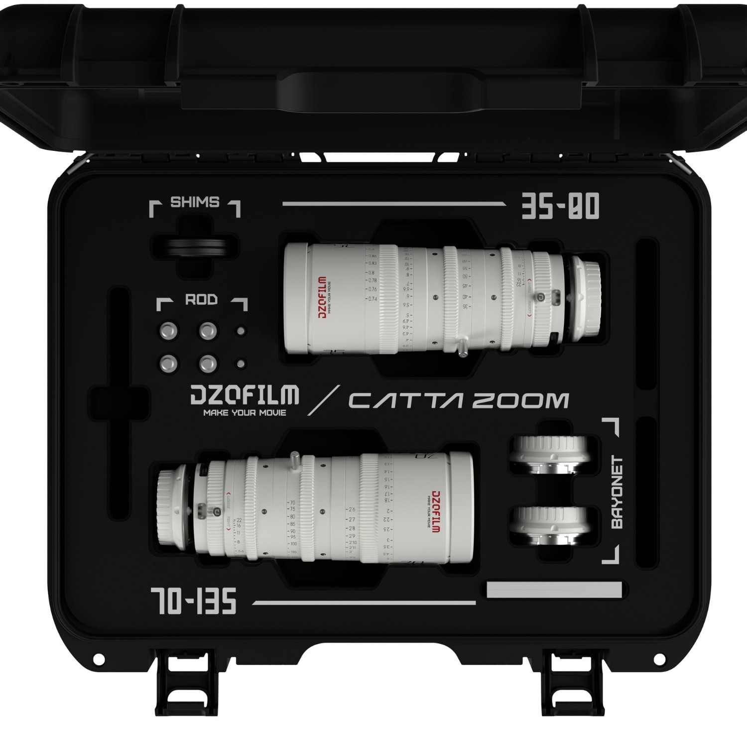 Este kit incluye ambos objetivos cine zoom en color blanco y un estuche rígido resistente para un transporte y almacenamiento seguros.