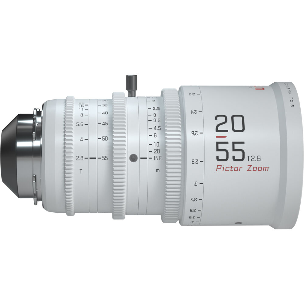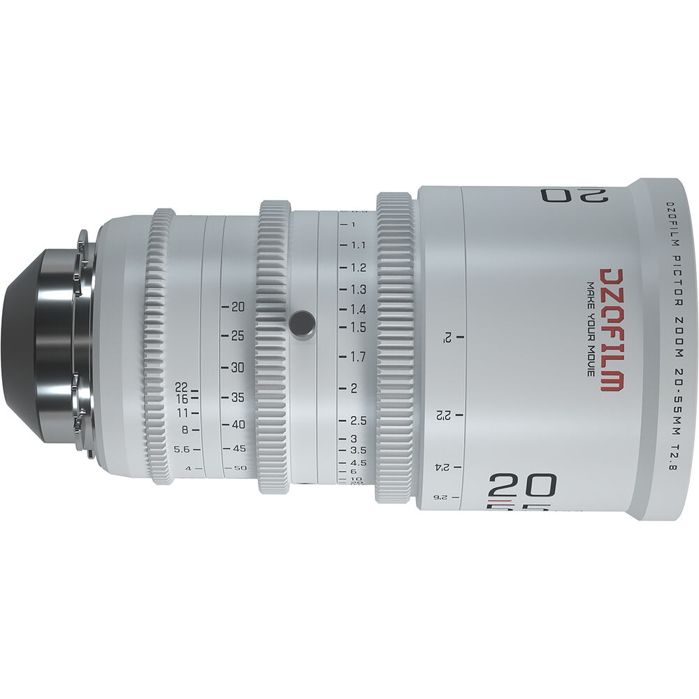 El objetivo cinematográfico parfocal DZO Pictor 20-55 mm T2.8 cubre sensores de formato Super 35 / APS-C, ofrece una luminosidad de T2.8 en todo el rango de distancias focales y se suministra con monturas intercambiables PL y EF. El diseño del objetivo elimina prácticamente el efecto de respiración y garantiza una imagen nítida en toda la superficie, así como un bonito renderizado de la escena fuera del plano de enfoque gracias a su diafragma de 16 láminas. Por supuesto, cuenta con anillos dentados de enfoque, diafragma y zoom para un fácil control remoto mediante sistemas de enfoque lateral (M0,8; recorrido del anillo de enfoque de 270°). El diámetro frontal es el estándar de 95 mm para los soportes habituales, y la rosca para filtros es de 86 mm. Tampoco falta la base para sujetar el objetivo en los rigs. Versión en blanco. Peso aprox. 1520 g. Para monturas PL y EF.