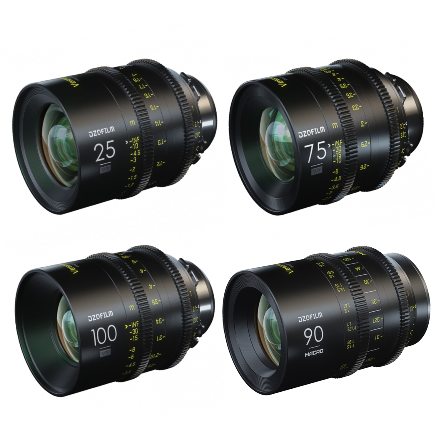 Juego de objetivos DZOFilm Vespid de 25, 75 y 100 mm T2,1 y 90 mm Macro T2,8 para montura EF.