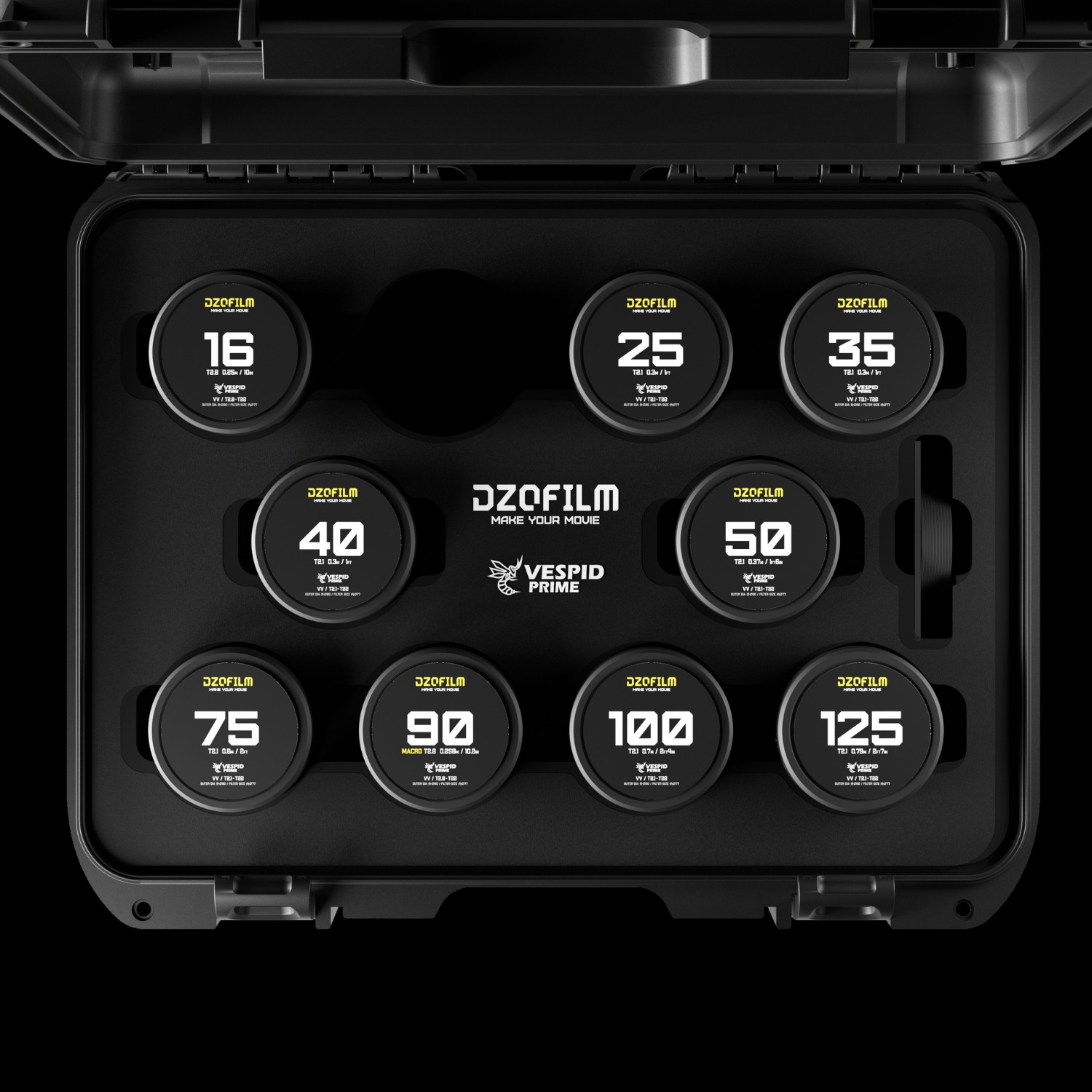 DZOFILM Vespid Prime 16/25/35/40/50/75/90/100/125mm(PL_Black_Case_9pcs_Metric)