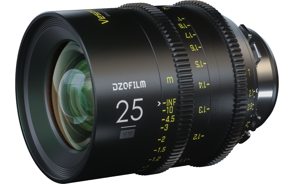 El objetivo DZOFilm VESPID 25 mm T2.1, relativamente pequeño y ligero, forma parte de la serie de objetivos VESPID de DZOFilm y es adecuado para la cinematografía independiente y de alta gama con sensores de fotograma completo. El objetivo tiene un diámetro frontal de 80 mm, lo que le permite funcionar prácticamente con cualquier caja difusora de estilo cine. Gracias a sus reducidas dimensiones, este objetivo es una opción atractiva para trabajar con drones y gimbals, así como para filmar a mano alzada o con un soporte. La montura PL intercambiable permite utilizar este objetivo totalmente manual en diversas cámaras de cine modernas e históricas, mientras que la cobertura de formato completo es compatible con sensores con un círculo de imagen de hasta 46,5 mm para su uso en cámaras con sensores de hasta formato completo sin viñeteado.