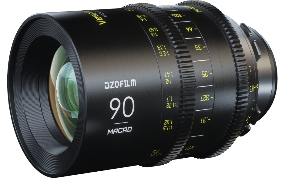 El objetivo DZOFilm VESPID 90 mm T2,8, relativamente pequeño y ligero, forma parte de la serie de objetivos VESPID de DZOFilm y es adecuado para la cinematografía independiente y de alta gama en formato completo. Este objetivo macro tiene un diámetro frontal de 80 mm, lo que le permite funcionar prácticamente con cualquier caja difusora de estilo cinematográfico. Gracias a sus reducidas dimensiones, este objetivo es una opción atractiva para trabajar con drones y gimbals, así como para grabar a mano alzada o desde una montura. La montura PL intercambiable permite utilizar este objetivo totalmente manual en diversas cámaras de cine modernas e históricas, mientras que la cobertura de formato completo es compatible con sensores con un círculo de imagen de hasta 46,5 mm para su uso en cámaras con sensores de hasta formato completo sin viñeteado.