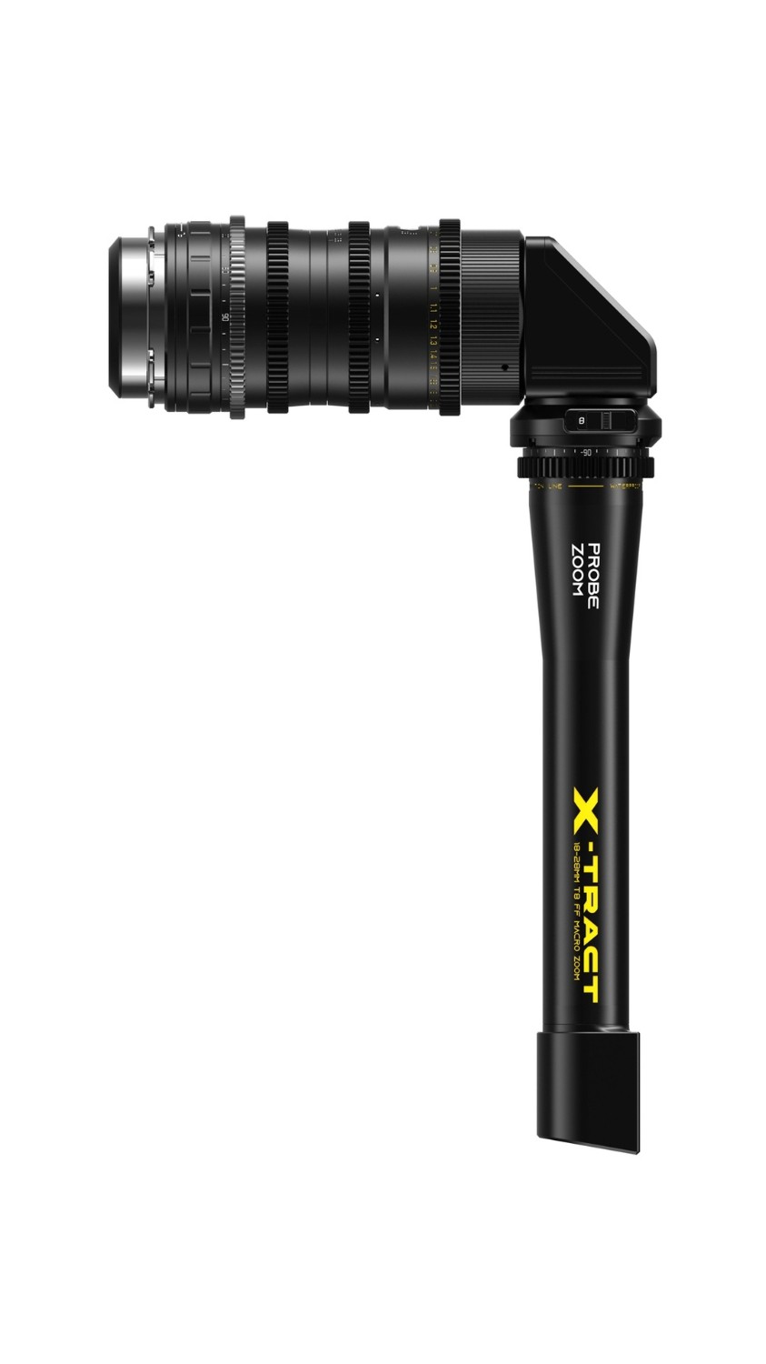 El objetivo zoom gran angular X-tract 18-28 mm T8 aporta una nueva dimensión a la cinematografía macro gracias a sus módulos frontales intercambiables de 0° (visión directa) y 90° (rectangular), que ofrecen versátiles opciones de filmación y un potencial creativo ilimitado. Está diseñado para formato completo y es totalmente compatible con los formatos S35, proporcionando un rango equivalente a 22-35 mm T8 en el modo Arri Alexa 35 Open Gate, lo que resulta ideal para la producción cinematográfica comercial. El diseño desmontable del módulo frontal permite cambiar fácilmente entre la configuración frontal y la angular, lo que facilita el ajuste de la distancia focal y el ángulo incluso en espacios reducidos. Esta adaptabilidad aumenta la profundidad espacial y la estratificación en las imágenes y ofrece a los cineastas una mayor flexibilidad para la narración creativa.