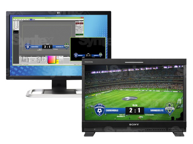 La salida FILL y KEY del generador de subtítulos es muy adecuada para regidorías de vídeo que se pueden incrustar. Una gran ventaja de esta configuración es el retraso nulo de los gráficos. En este caso, los gráficos se activan/desactivan desde la regiduría y, de esta manera, se pueden encadenar varios generadores de subtítulos independientes.