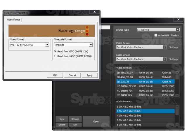 Ingest es totalmente compatible con las tarjetas de captura DeckLink de Blackmagic Design. Gracias a la amplia gama de tarjetas, se puede crear prácticamente cualquier solución, que además puede contar con hasta 4 entradas SD/HD independientes (por ejemplo, al utilizar la tarjeta DeckLink Quad).