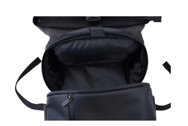 Con una capacidad de 30 litros, la mochila puede albergar fácilmente un portátil de hasta 15,6 pulgadas, ropa, libros, una botella de agua y otros artículos de uso diario. Su diseño enrollable permite ampliar o reducir la mochila según sea necesario, pudiendo ajustar las dimensiones entre 38 × 12 × 32 cm y 42 × 12 × 32 cm. El sistema de cierres de fácil apertura permite un cómodo manejo con una sola mano.