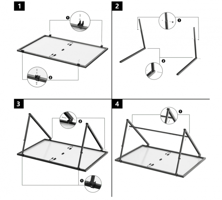 Para una mayor movilidad, se pueden acoplar al soporte unas ruedas opcionales (se venden por separado) que le permitirán desplazar y reorientar fácilmente los paneles solares según las condiciones cambiantes de la luz solar o las necesidades del lugar.
