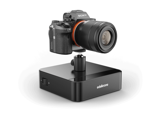Carro de mesa motorizado y ultraportátil para crear movimientos lineales o curvos de la cámara sobre una superficie plana + conexión inalámbrica con cabezales motorizados edelkrone.