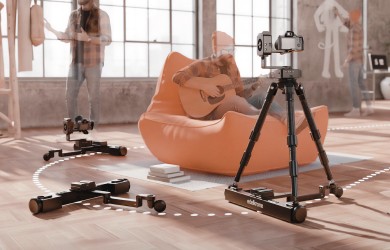 Incluso sin el cabezal motorizado, DollyONE proporciona un movimiento fluido y cinematográfico tanto en líneas rectas como en curvas. Desde desplazamientos laterales hasta dramáticos dolly-ins y amplios arcos alrededor de tu objeto: con solo un trípode y DollyONE conseguirás tomas de aspecto profesional.