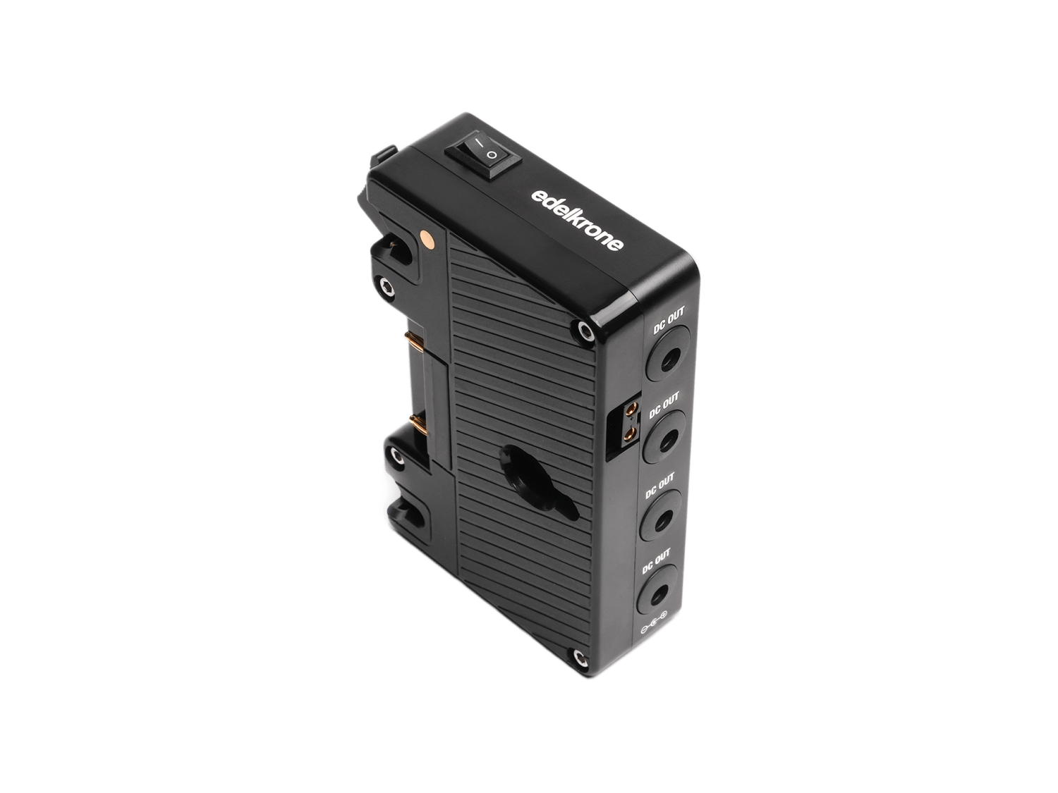 Módulo de alimentación: alimenta hasta 4 dispositivos edelkrone con una sola batería V-Mount o Gold Mount.