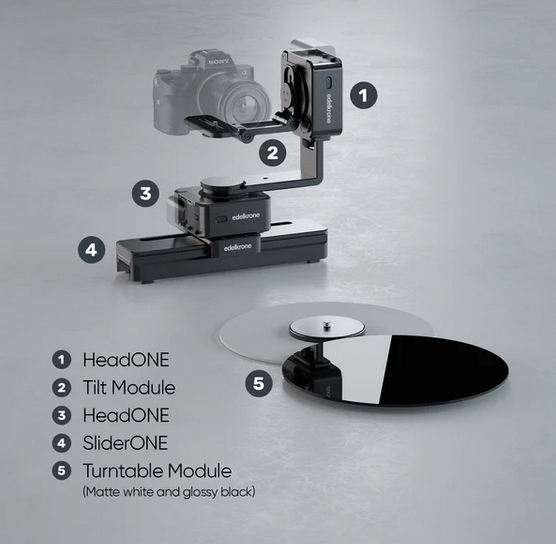Paquete Edelkrone SlideAction - completo: sistema avanzado de control de movimiento que incluye HeadONE v2 (x2), SliderONE v3, el módulo TurnTable y el módulo Tilt para obtener tomas cinematográficas versátiles y de gran precisión.