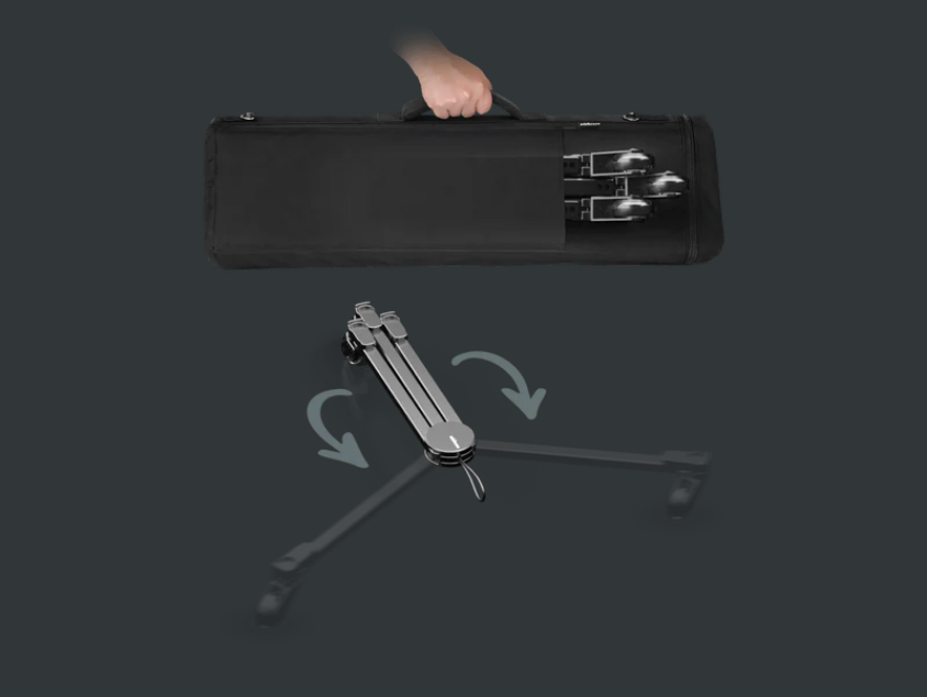 Estas ruedas son muy versátiles, diseñadas para ser compatibles con cualquier trípode gracias a las ranuras ajustables para las patas del trípode y a las correas de seguridad adicionales. Su diseño plegable resulta cómodo para el almacenamiento y el transporte, y garantiza que no ocupen espacio innecesario cuando no se utilizan.