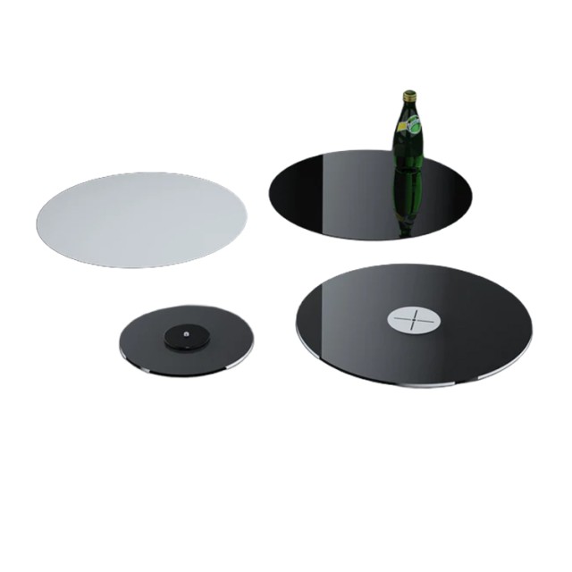 El módulo giratorio está diseñado para girar los productos de forma fluida en 360° y está disponible en tres tamaños para adaptarse a diferentes necesidades. Los modelos mediano y grande están equipados con una base de plexiglás para una mayor estabilidad.