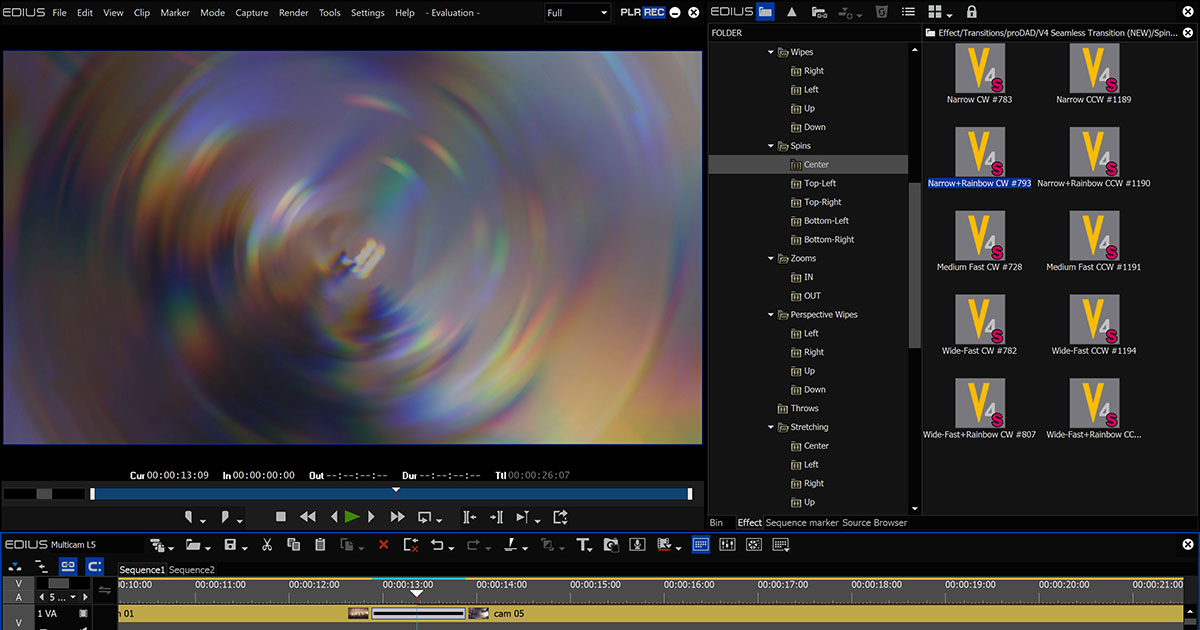 Nueva actualización 11.11.14359 para EDIUS 11 ofrece optimizaciones de velocidad en la edición en la línea de tiempo, un procesamiento más ágil de los efectos mediante la GPU para la exportación (corrección de color primario, monotono, mediana), optimizaciones al trabajar con imágenes estáticas que contienen canal alfa, guardado del estado de la ventana Bin junto con el proyecto, nuevos atajos de teclado (F2 para renombrar medios en las ventanas Bin/Library de la sección Mync; F3 para buscar medios en los bins), o la función «Print to Tape» (para Grass Valley Storm 3G I/O) en la versión EDIUS 11 Broadcast. La nueva versión se puede descargar en edius.net/edius_download.html.
