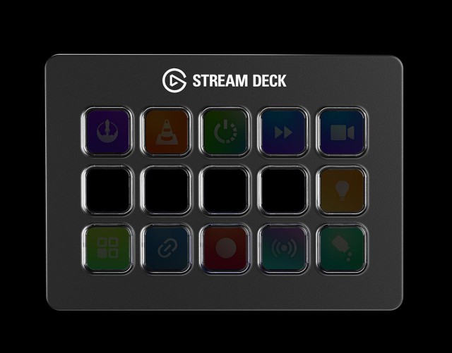 15 botones LCD listos para ejecutar un número ilimitado de acciones. Con un solo toque puedes controlar aplicaciones, publicar en redes sociales, ajustar el sonido, silenciar el micrófono, encender las luces y muchas otras funciones, y cada comando se confirma con una respuesta visual.