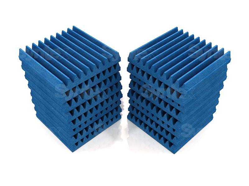 Espuma acústica con parámetros acústicos garantizados. La espuma absorbente es ideal para estudios de grabación, estudios domésticos, locales de ensayo, home cinema, etc. Paquete de 16 unidades de espuma acústica, color azul, dimensiones 30 x 30 x 5 cm.