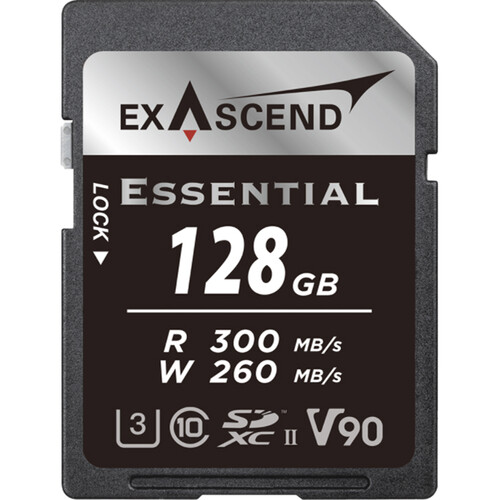 Las tarjetas de memoria SDXC UHS-II de la serie Exascend Essential han sido diseñadas para la captura secuencial de fotografías y la grabación de vídeo con altos caudales de datos, sin riesgo de pérdida de fotogramas, así como para una lectura rápida que garantiza una transferencia de datos fluida durante la posproducción. Las tarjetas utilizan el bus UHS-II para una lectura continua a una velocidad máxima de 300 MB/s y una escritura continua de hasta 260 MB/s; gracias a la certificación V90, se garantiza que la velocidad mínima de escritura no caiga por debajo de los 90 MB/s. Para una mayor fiabilidad, la serie Essential ofrece un diseño resistente al agua, al polvo, a los golpes, a la radiación de rayos X, a los campos magnéticos y a temperaturas comprendidas entre -25 y 85 °C. Las tarjetas también están equipadas con un interruptor de protección contra la escritura involuntaria.