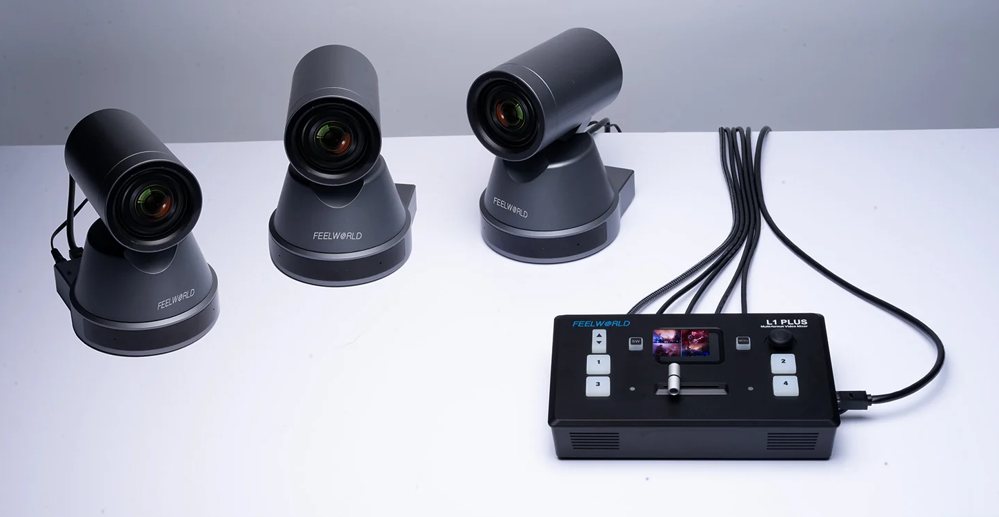 El L1 PLUS puede controlar cámaras que admitan el protocolo VISCA. Una vez que la cámara está conectada a la red LAN (red de área local), puedes controlar el movimiento de la cámara, el zoom y el enfoque. Al mismo tiempo, también almacena en la memoria la información sobre la posición y el zoom de la cámara para una rápida recuperación en el próximo uso. También puede controlar hasta 8 cámaras PTZ en la aplicación (Feelworld Live) a través del conmutador PoE, lo que resulta ideal para profesionales del sector audiovisual y de TI que necesitan gestionar de forma remota varias cámaras PTZ en su red.