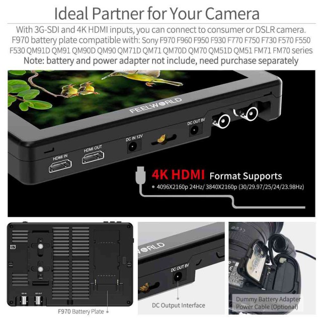 • Entradas: HDMI 4K, 3G-SDI, 7-21 V=/2 A, ≤ 20 W