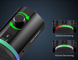 El botón de control de volumen permite ajustar en tiempo real el volumen del micrófono o de los auriculares, lo que te permite disfrutar de un sonido de alta calidad.