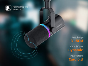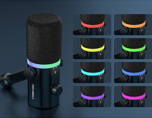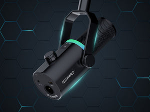 Micrófono dinámico FEELWORLD PM1 XLR USB para podcasting, grabación de videojuegos y retransmisiones en directo. El FEELWORLD PM1, con un diseño moderno y compacto, ofrece un sonido natural y nítido, además de numerosas funciones. Adecuado para diversos escenarios de uso, es ideal para podcasters, cantantes, gamers y actores de doblaje para la grabación y las retransmisiones en directo.