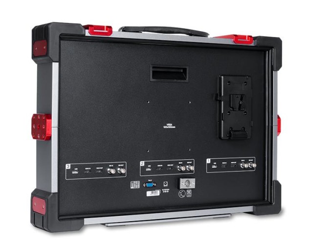 El monitor se alimenta a través de CC 12–24 V, XLR o una placa de batería V-mount e incluye un soporte VESA de 100 x 100 mm para una instalación versátil. Robusto y profesional, es adecuado para retransmisiones, cine y producciones de estudio.