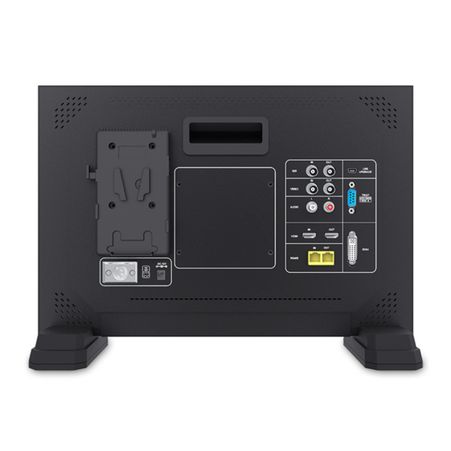 Monitor de control de alta gama con panel LED de 17,3 pulgadas (1920 x 1080, 16:9, 300 cd/m², ángulos de visión de 178°) y entradas 1x 3G-SDI, 1x 4K HDMI, DVI, RS-485 y audio (L/R). El monitor también ofrece visualización de comandos de señalización (UMD y Text-Tally; TSL 3.1/4.0), salidas 3G-SDI/HDMI, altavoz integrado, salida de auriculares, placa de batería para acumuladores V-Mount (opcionalmente Gold Mount), entrada de alimentación con conector XLR4 y un robusto marco de aluminio. Por supuesto, incluye funciones de asistencia al enfoque, zoom, Pixel-to-Pixel, rotación de imagen, control de fotogramas, etc. Opcionalmente, se puede suministrar con una maleta de aluminio a medida.