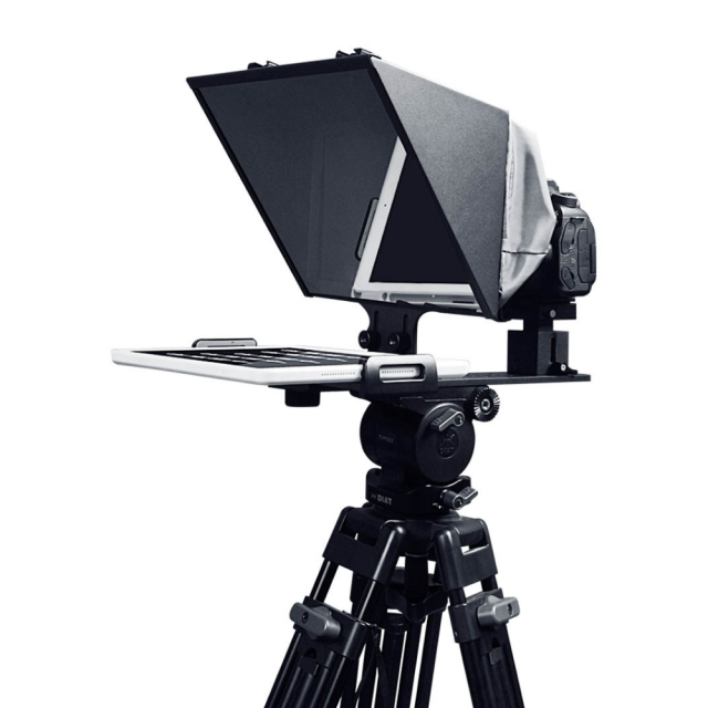 El dispositivo de lectura universal Feelworld TP13 permite visualizar texto en prácticamente cualquier teléfono o tableta (hasta 11 pulgadas) y grabar vídeo tanto con teléfonos como con cámaras DSLR/DSLM gracias al ingenioso diseño de sus pinzas y al soporte de cámara regulable en altura (rango de hasta 6 cm). También incluye un parasol de tela extraíble, anillos de espuma y un mando a distancia Bluetooth que se comunica con la aplicación para Android/iOS incluida.
