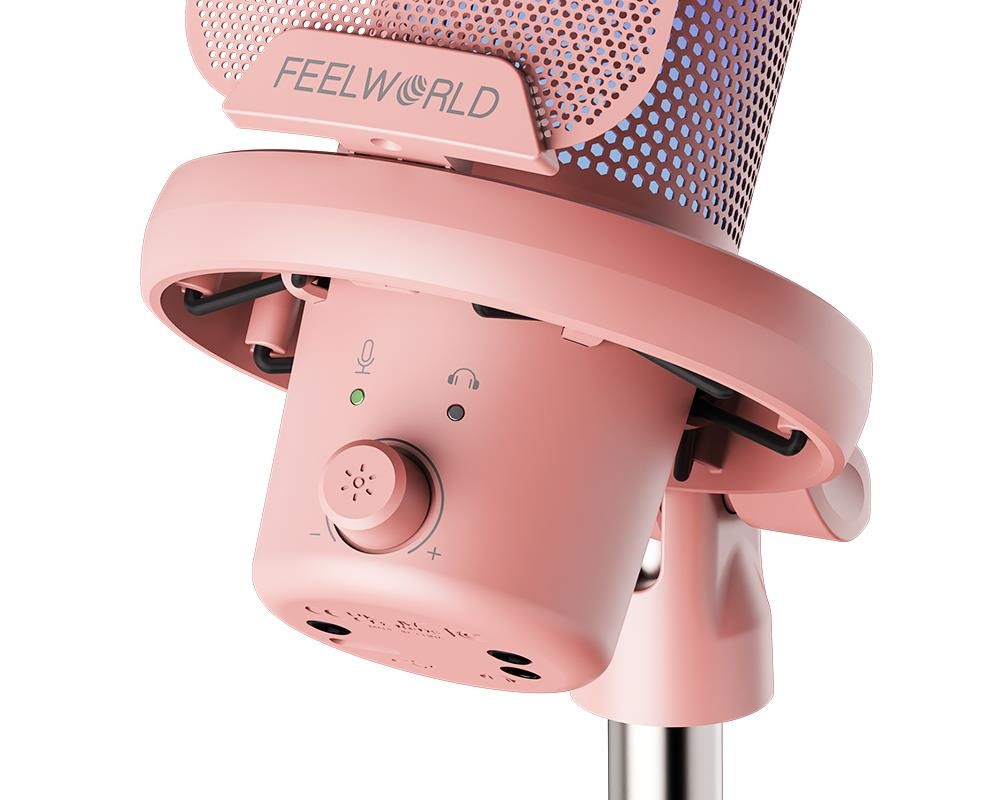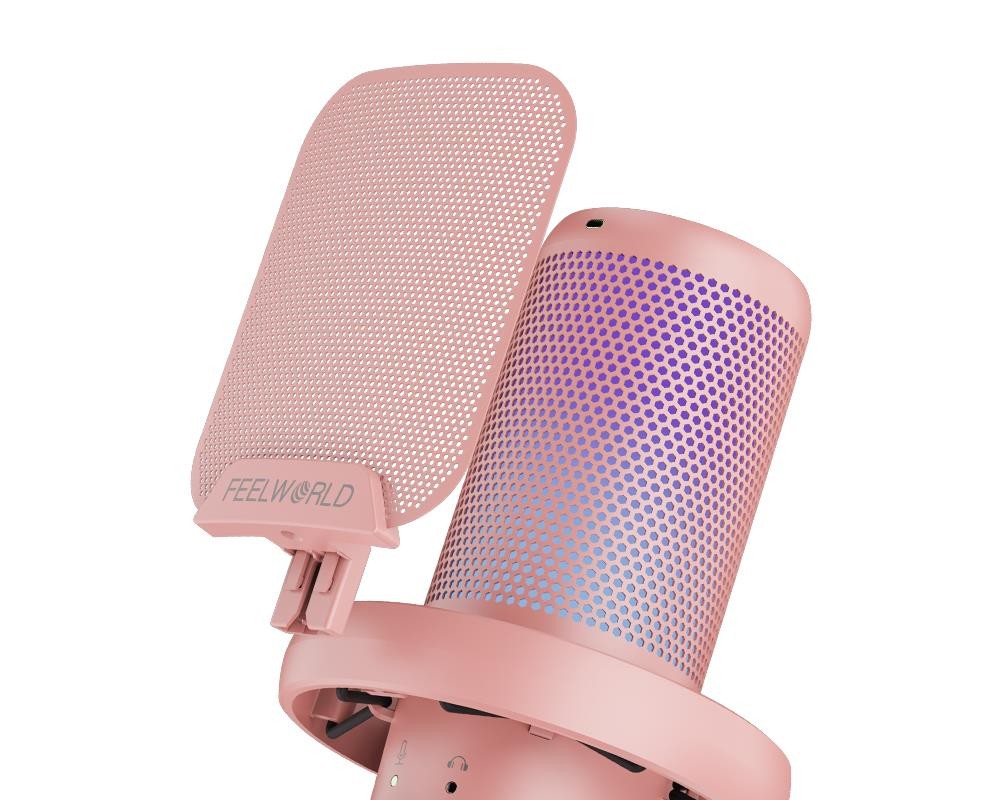 El Feelworld VM1-AS-P es un micrófono USB de tipo «plug-and-play» diseñado para streaming, videojuegos y podcasting. Cuenta con un patrón polar cardioide para captar un sonido nítido y minimizar el ruido de fondo, un botón especial para silenciar o suprimir el ruido y una iluminación RGB multimodal personalizable que realzará tu configuración.