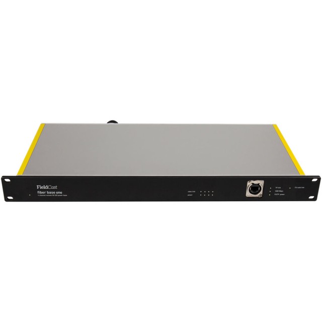 El Fiber Base One de FieldCast permite conmutar, supervisar y controlar hasta cuatro cámaras PTZ mediante cables ópticos. Este dispositivo de 1 RU actúa como concentrador central para la gestión de las cámaras PTZ y de las unidades Fiber Node One conectadas a ellas.